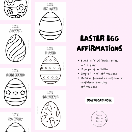 Printable Easter Affirmations 3-in-1 Activity Book for Kids | Coloring, Cutting, & Mindfulness | Instant Download | Easter Basket Stuffer